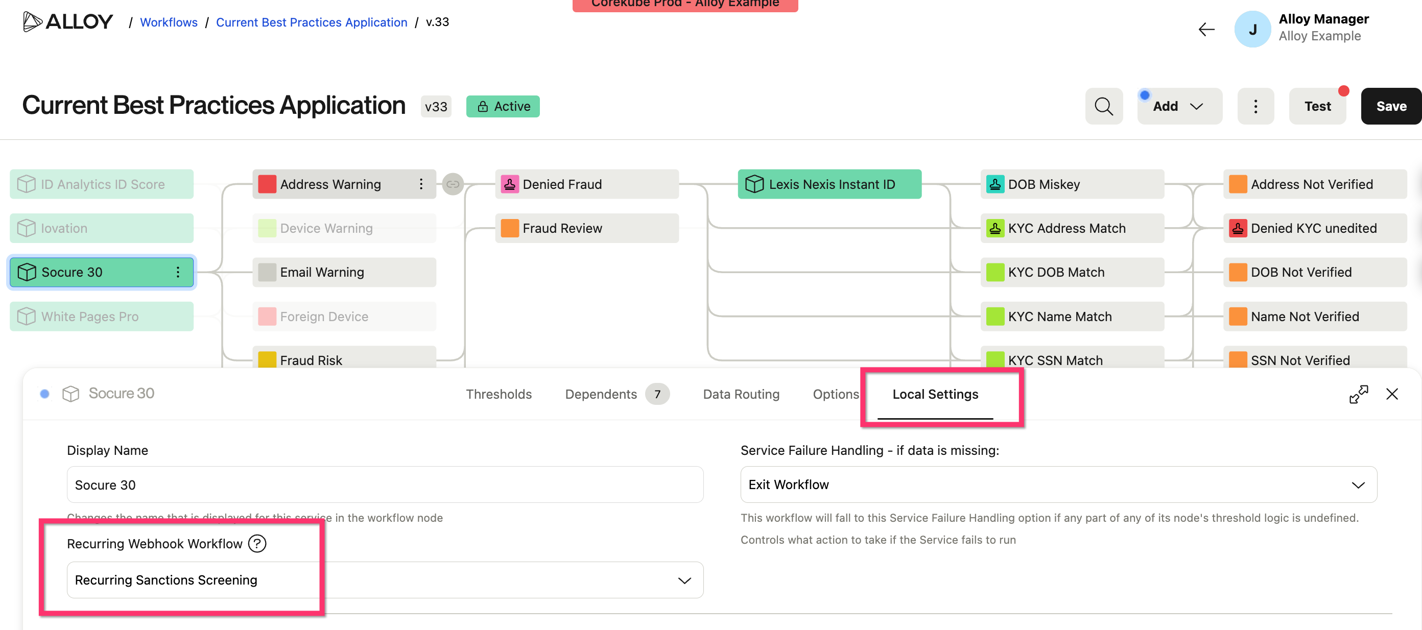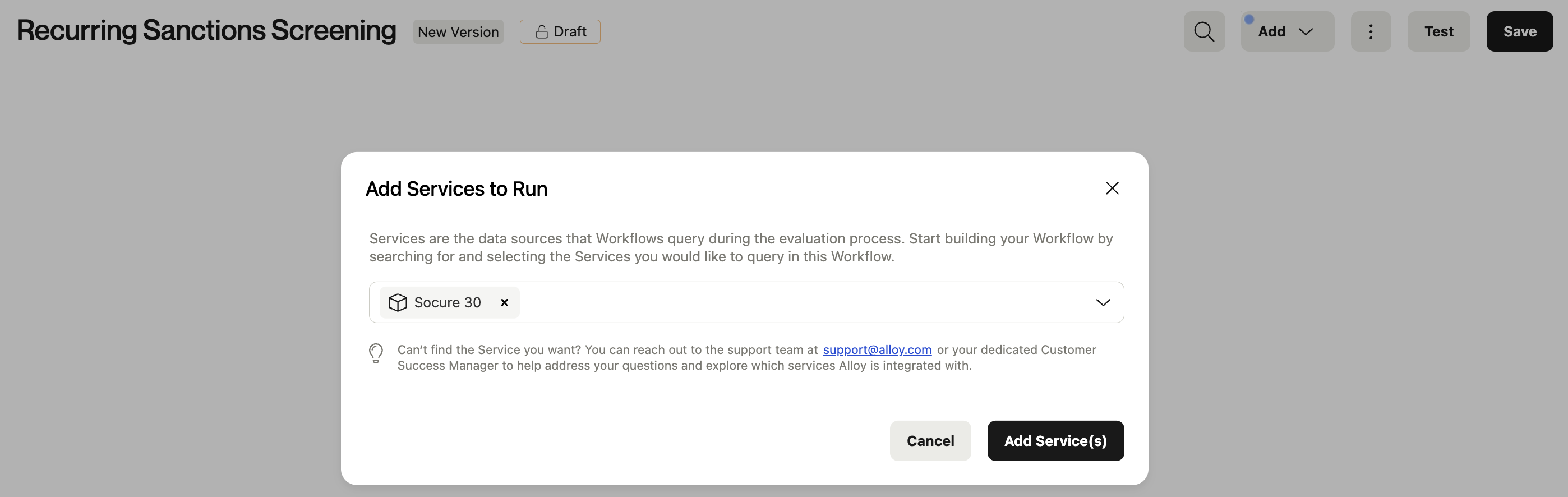 Note: If you are using Ongoing Watchlist Monitoring, please reach out to your CSM or Alloy Support before activating the Workflow.
