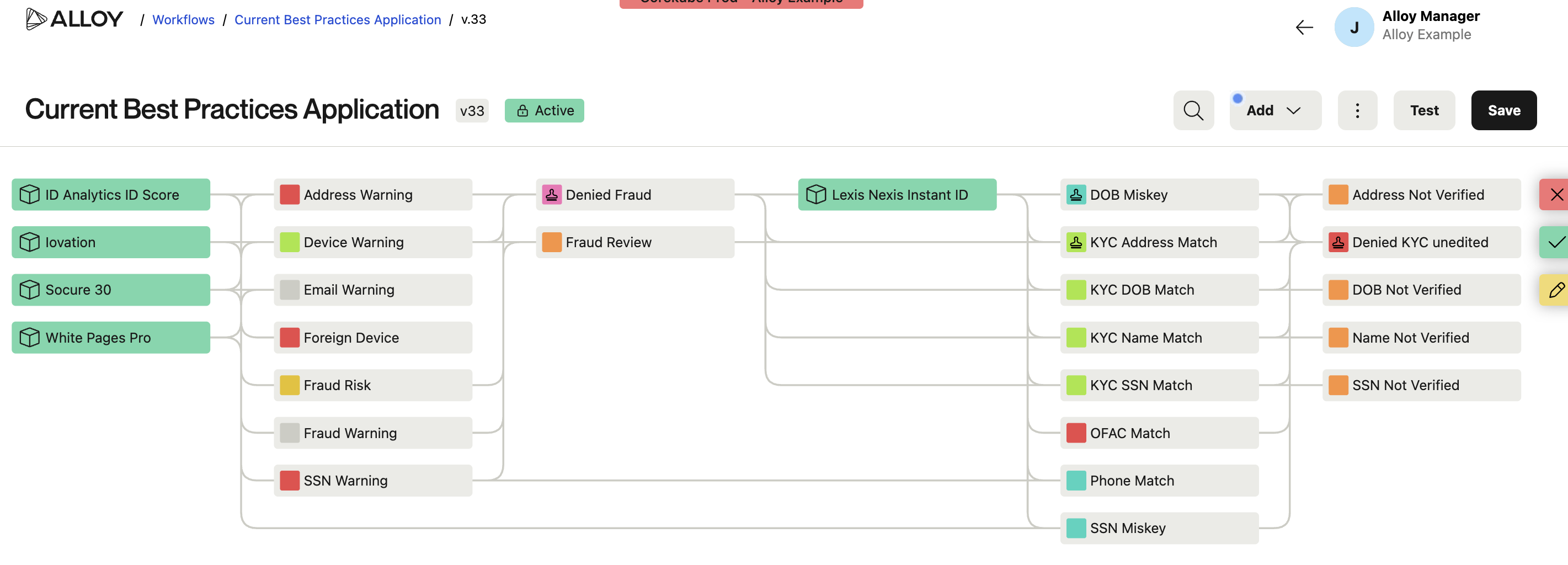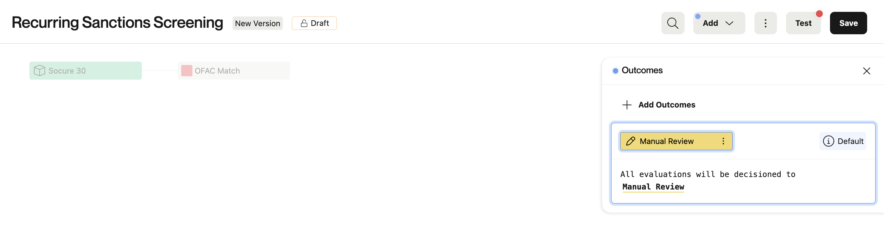 Similarly, with outcome configuration, Alloy can automatically decision any recurring evaluation from this workflow as Manual Review.